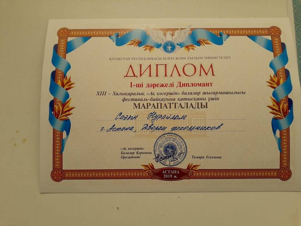 Осы жылдың 25-28 наурызы аралығында Нұр-Сұлтан қаласындағы Жастар сарайында XIII халықаралық "Ақ көгершін" балалар шығармашылығы фестиваль-байқауы өтті.